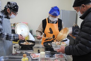 食推の方と協力して、レシピを見ながら作り方や味付けを工夫しており、皆さんそれぞれ自分の役割を持って楽しく活動していました。