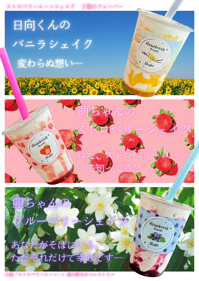 ストロベリームーンシェイク(各種450円 税込み)