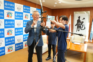 奥塚市長は、「優勝おめでとうございます。オリンピック選手を目指して、これからも頑張ってください。」と話しました。