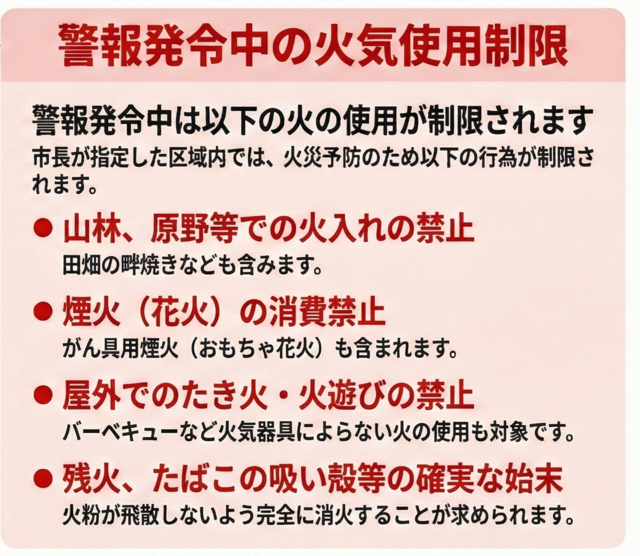 警報発令中の火気使用制限