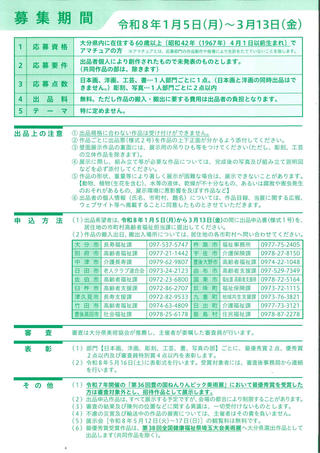 令和8年5月12日(火)から令和8年5月17日(日)に大分県立美術館(OPAM)3階展示室Bにて開催される第37回豊の国ねんりんピック美術展の作品を募集します。