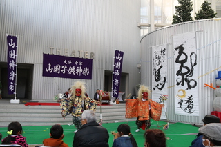 令和8年1月4日日曜日、コアやまくにタウンホールで「新春やまくに」が開催されました。会場には地元の方々や家族連れなど多くの方が集まり、力のこもった書道パフォーマンスや勇壮な神楽の演舞に大きな拍手が送られました。また、槻木レンジャーも新登場曲を披露し、イベントの最後は餅まきで締めくくられ、活気ある新年のスタートとなりました。
