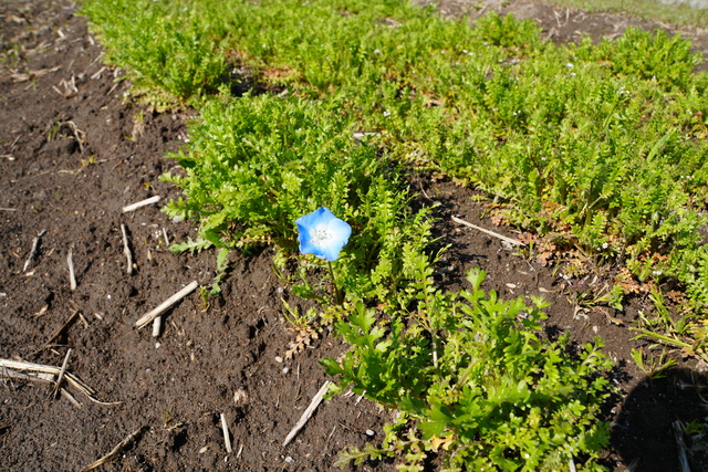 ネモフィラの成長も一気に進み、畑によっては青く可憐な花が一面に広がっています。お天気が良ければ花もしっかりと開いて、きれいなネモフィラ畑がご覧になれます!