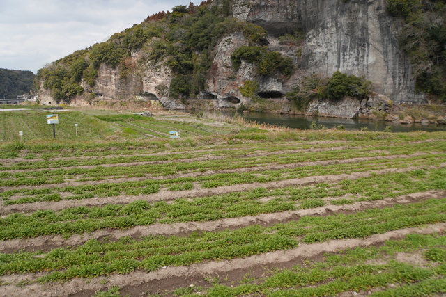 令和8年4月3日 金曜日、青の洞門対岸で昨年の11〜12月に種まきを行ったネモフィラの生育状況をお知らせします。