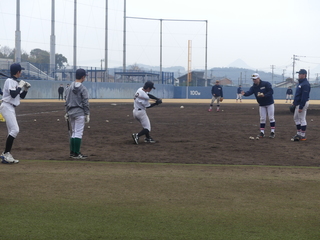 2日目は、九州共立大学硬式野球部との練習試合が開催されました。試合後は、バッティング練習やノックのトレーニングが行われました。