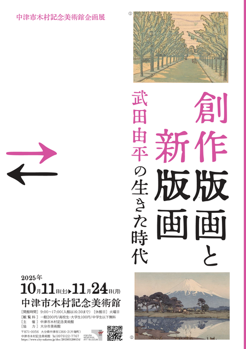 本展覧会では、「創作版画」と「新版画」の代表的な作家とその作品を紹介するとともに、武田由平の作品を取り上げながら、中津における版画運動を概観します。