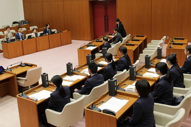 令和7年11月4日火曜日、中津市議会広報広聴委員会は東九州龍谷高等学校生徒と意見交換会を行いました。