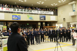 奥塚市長は「元永さん、本当におめでとうございます。予選、決勝両方で100点を出すことは本当に素晴らしいです。また、日頃から市内のイベントにも多く出場して、市民のみなさんをその歌声で盛り上げていただき感謝します。今後も益々のご活躍を期待します。」と感謝の言葉を贈りました。