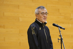 開始式で奥塚市長は、教室開催にあたり実行委員会をはじめ各関係者にお礼を述べるとともに、世界で活躍した末綱さんから技術を学んで、明日からの練習に活かしてほしいですとあいさつをしました。