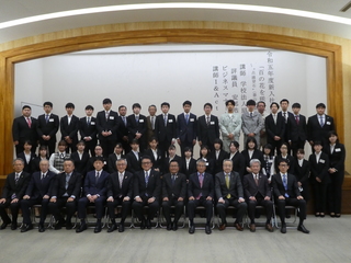 奥塚市長はお祝いの言葉を伝えるとともに、みなさんの持てる力を存分に発揮し、自身の夢の実現や経済発展の原動力となるようがんばっていただきたいと激励しました。