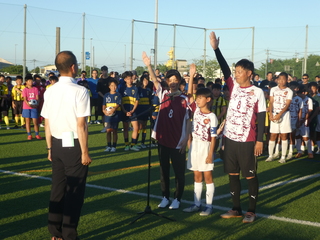 令和7年7月29日火曜日、第38回親子サッカーナイター大会開会式がディーアクトスポーツパーク永添人工芝多目的グラウンドで開催されました。