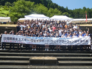 令和7年8月2日土曜日、2025日韓親善水上スキー・ウェイクボード・ウェイクサーフィン選手権大会の開会セレモニーが耶馬溪アクアパークで行われました。