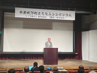 奥塚市長はあいさつで、関係者や参加者へ感謝を伝えるとともに、歴史的景観を活かしたまちづくりについて共に考えて、そしてこの場を新たな出会いや連携のきっかけとしていただくことで、中津の城下町の未来に向けた第一歩となりますことを強く期待しますなどと話しました。