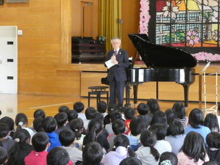 令和7年11月17日月曜日、北部小学校で一般社団法人RENTARO室内オーケストラ九州所属の朝来桂一氏と大分県出身のピアニスト小町美佳氏によるヴァイオリンコンサートが行われました。