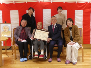 令和8年1月7日水曜日、百歳を迎えた三雲 香さんのお祝いのため特別養護老人ホームやすらぎ荘を訪問し、お祝い状と記念品を贈りました。