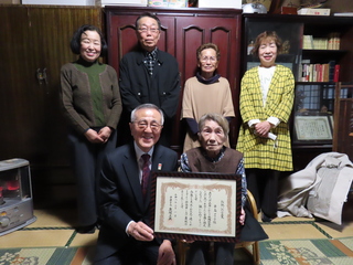 令和8年3月3日火曜日、百歳を迎えた辛島 アヤ子さんのお祝いのためご自宅を訪問し、お祝い状と記念品を贈りました。